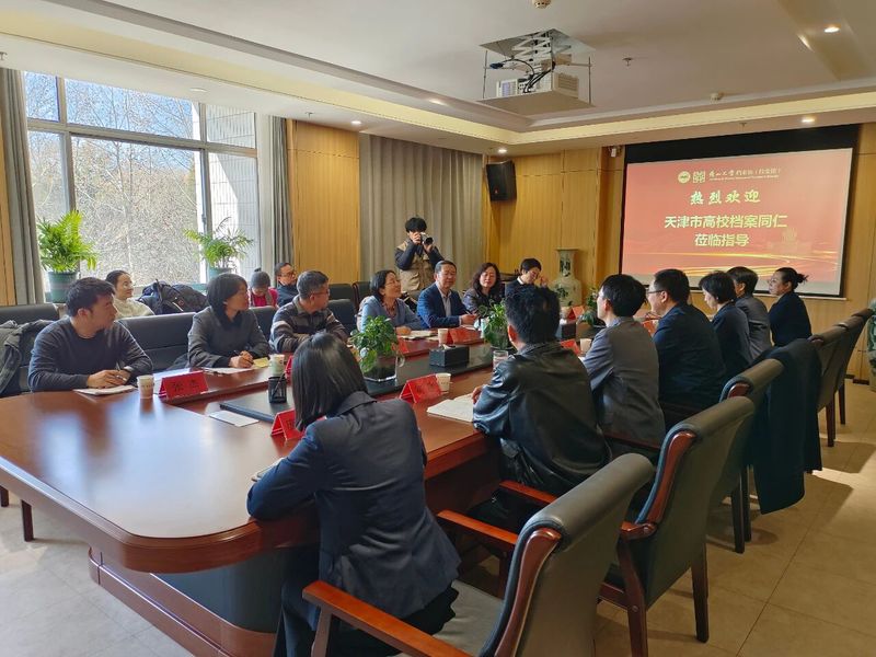 2025年12月3日,天津市高校档案工作委员会一行17人赴燕山大学档案馆,围绕数字档案室建设、校史研究与文化建设等方面,开展专题调研和业务交流。来自南开大学、天津大学、天津工业大学、天津师范大学、天津中医药大学、天津科技大学、天津财经大学、天津理工大学、天津职业大学、天津机电职业技术学院等高校档案部门负责人及相关工作人员参加了本次调研。